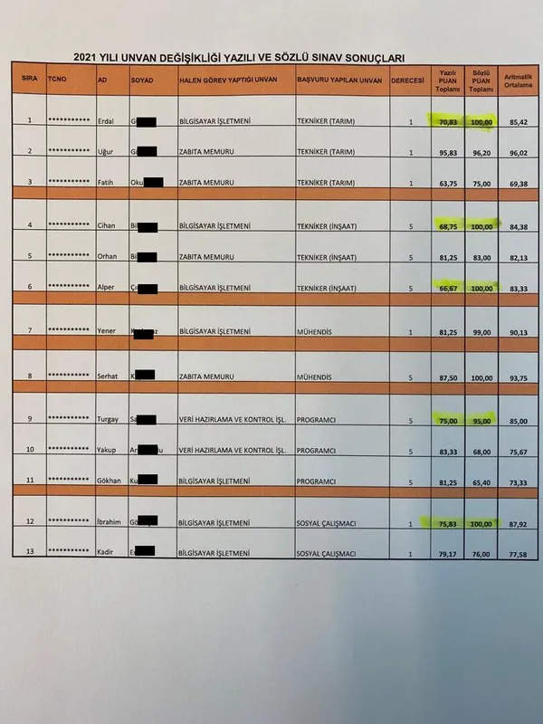 Küçükçekmece Belediyesi, ‘Görevde Yükselme ve Unvan Değişliği Sınavı’ sonrası sözlü sınav yaptı. Yazılı sınavda yüksek puan alanlar, düşük not verilerek elenirken, düşük puan alanlara sözlü mülakatta 100 ve 95 puan vererek geçmeleri sağlandı.