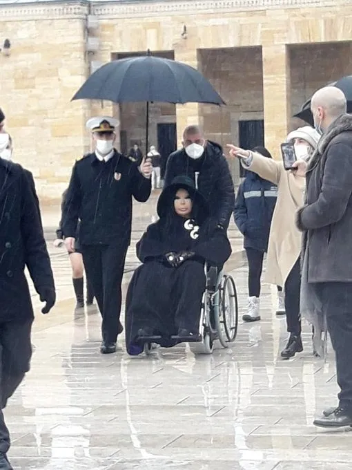 Sosyal medyada, Ersoy'un Anıtkabir'i ziyaret ettiği sırada üniformalı bir subayın şemsiye tutarak kendisine eşlik ettiğine ilişkin görüntüler yer aldı.