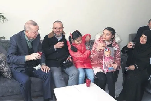 BAŞKAN Erdoğan, kendisine 21 yıl önce Dereli'de çekilmiş bir fotoğrafını gösteren Muhammet Sarıyıldız'a "Ben cezaevinden çıktıktan sonra Dereli'ye gelmiştim Nereden nereye..." dedi. Erdoğan, anahtar teslimi yaptığı ailelere "Rabbim huzurlu bir şekilde oturmayı nasip etsin" temennisinde bulunurken misafir olduğu bir ailenin evinde ikram edilen nar suyunu içti.