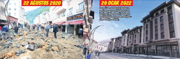 Başkan Recep Tayyip Erdoğan, 22 Ağustos 2020'de Giresun'da başta Dereli ve Doğankent olmak üzere birçok ilçeyi etkileyen sel felaketinden sonra devlet eliyle yeniden yapılan konut, işyeri ve altyapı yatırımlarının açılış törenine katıldı. Giresun Dereli'de düzenlenen "Dereli-Doğankent Afet Konutları, İşyerleri ve Altyapı Yatırımları Açılış Töreni"nde Başkan Erdoğan özetle şunları söyledi:
