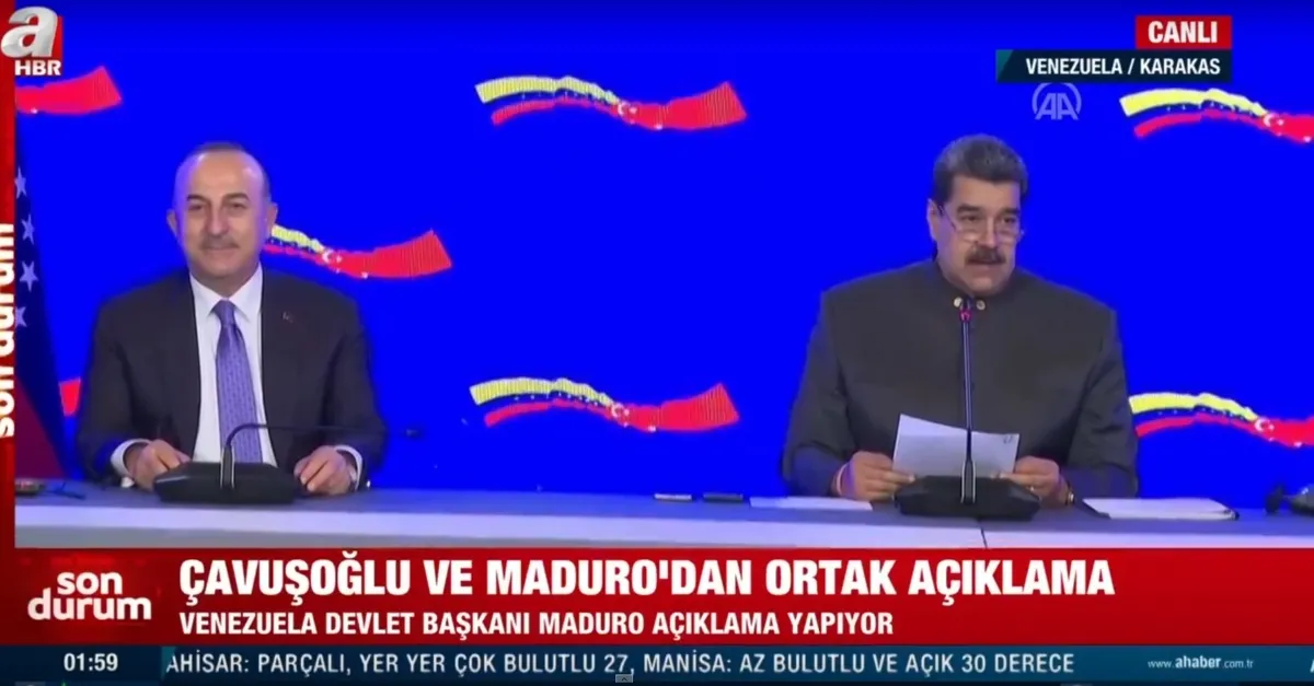 Venezuela Devlet Başkanı Nicolas Maduro'nun da katılımıyla iki ülke arasında bazı anlaşmaların imzalandığı törene katılan Çavuşoğlu, başkent Karakas'taki Miraflores Sarayı'nda düzenlenen Venezuela-Türkiye Ortak İşbirliği Komisyonu 3. Toplantısı'nın kapanış oturumunda konuştu.