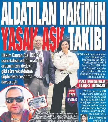 Geçen yıl 5 Mayıs'ta SABAH'ta manşete taşınan dava sürecine göre hakim Osman Ala, eşi Merve Gedik Ala'nın, İBB Kültür Varlıkları Daire Başkanı Oktay Özel ile iş ilişkisini aşan bir yakınlığı olduğunu, ikilinin gece geç saatlere kadar mesajlaştığını, ayrıca eşine makam aracı tahsis edildiğini gerekçe göstererek boşanma davası açtı. İstanbul Aile Mahkemesi çifti geçtiğimiz aylarda boşadı.