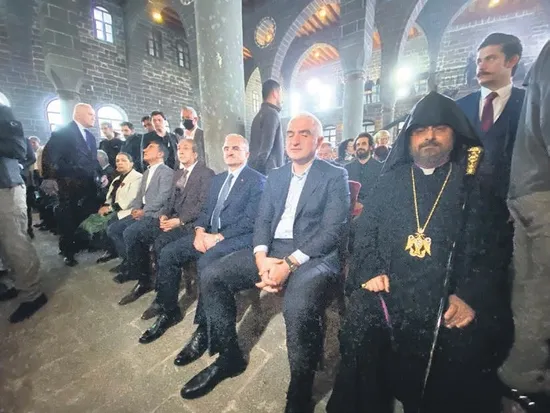 Diyarbakır'da farklı dinlerin bir arada yaşadığı tarihi Sur ilçesinde, 7 yıl önceki hendek olaylarında ağır hasar gördükten sonra onarılan Surp Giragos Ermeni Kilisesi'nde dün tarihi bir gün yaşandı. PKK yandaşlarının el yapımı patlayıcılarla tahrip ettiği 3 bin 769 metrekare alana sahip kilise, Başkan Recep Tayyip Erdoğan'ın talimatıyla başlatılan "Sur İhya Projesi" kapsamında onarıldı.