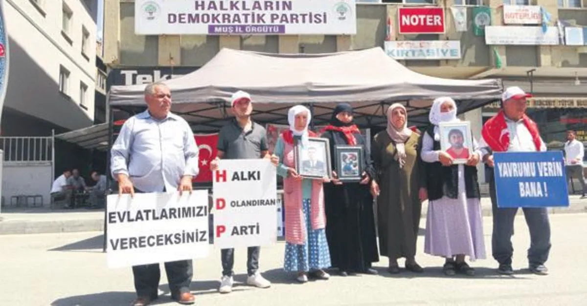 MUŞ'ta, çocuklarının terör örgütü PKK tarafından dağa kaçırılmasından HDP'yi sorumlu tutan aileler, partinin il başkanlığı önünde oturma eylemi yaptı. Çocuklarına kavuşma ümidiyle Diyarbakır annelerinin başlattığı eyleme destek veren aileler, her hafta çarşamba günü yaptıkları eylemi devam ettirdi. HDP il binası önünde bir araya gelen aileler, "Halk düşmanı parti", "Evlatlarımızı vereceksiniz", "Ha HDP ha PKK" ve "Anneler direniyor" yazılı pankartlar açtı. Çocuklarının fotoğraflarını ellerinden düşürmeyen anne ve babalar, slogan atarak HDP'ye tepki gösterdi, çocuklarına "devlete teslim ol" çağrısında bulundu. Anne Gülbahar Teker, eylemlerini sürdürmekte kararlı olduklarını belirterek, "Biz çocuklarımızı HDP ve PKK'dan istiyoruz. Bir çocuk dağda kalana kadar bu eylemi devam ettireceğim" dedi.