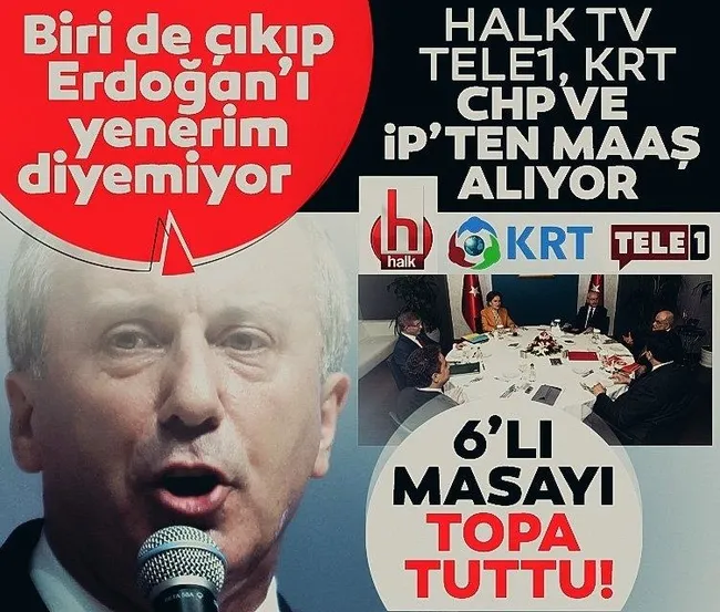 Memleket Partisi Genel Başkanı Muharrem İnce, bugün Denizli'de yaptığı konuşmada "Halk TV, Tele 1, KRT, CHP'den ve İYİ Parti'den her ay düzenli maaş alıyor. Miktarlarını bile söylerim." açıklamasında bulundu.