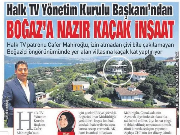 İstanbul Çevre, Şehircilik ve İklim Değişikliği İl Müdürlüğü, Halk TV Yönetim Kurulu Başkanı Cafer Mahiroğlu’nun Sarıyer Tarabya’da Boğaz’a nazır villasındaki kaçak inşaatı mühürledi