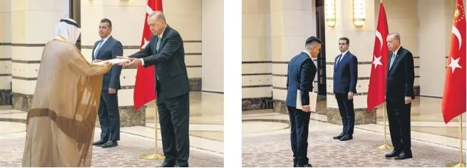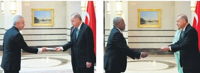 Sırasıyla Kenya Büyükelçisi Leonard Ngeywa Boiyo, KKTC Büyükelçisi İsmet Korukoğlu, Türkmenistan Büyükelçisi Mekan Ishanguliyev, Kuveyt Büyükelçisi Wael Yousef Alenzi, Başkan Erdoğan'a güven mektubu takdim etti.