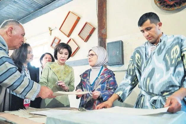 Cumhurbaşkanı Erdoğan'a Özbekistan programında eşlik eden eşi Emine Erdoğan, Özbekistan Cumhurbaşkanı Şevket Mirziyoyev'in eşi Ziroat Mirziyoyeva ile birlikte Semerkand'da Konigil Kâğıt Fabrikası'nı ziyaret etti. Erdoğan daha sonra tarih ve geleneğin canlandırıldığı "Ebedi Şehri" gezdi. Ziyaretine ilişkin paylaşım yapan Erdoğan, "Ebedi Şehrin sokakları, çarşısı ve insanları o dönemin ruhunu bire bir yansıtıyor. 6'ncı yüzyıla ait Soğd Düğünü canlandırması ile adeta görsel bir şölen izledik. Gelenek ve göreneklerin bu denli korunarak geleceğe aktarılıyor olması çok kıymetli" dedi.