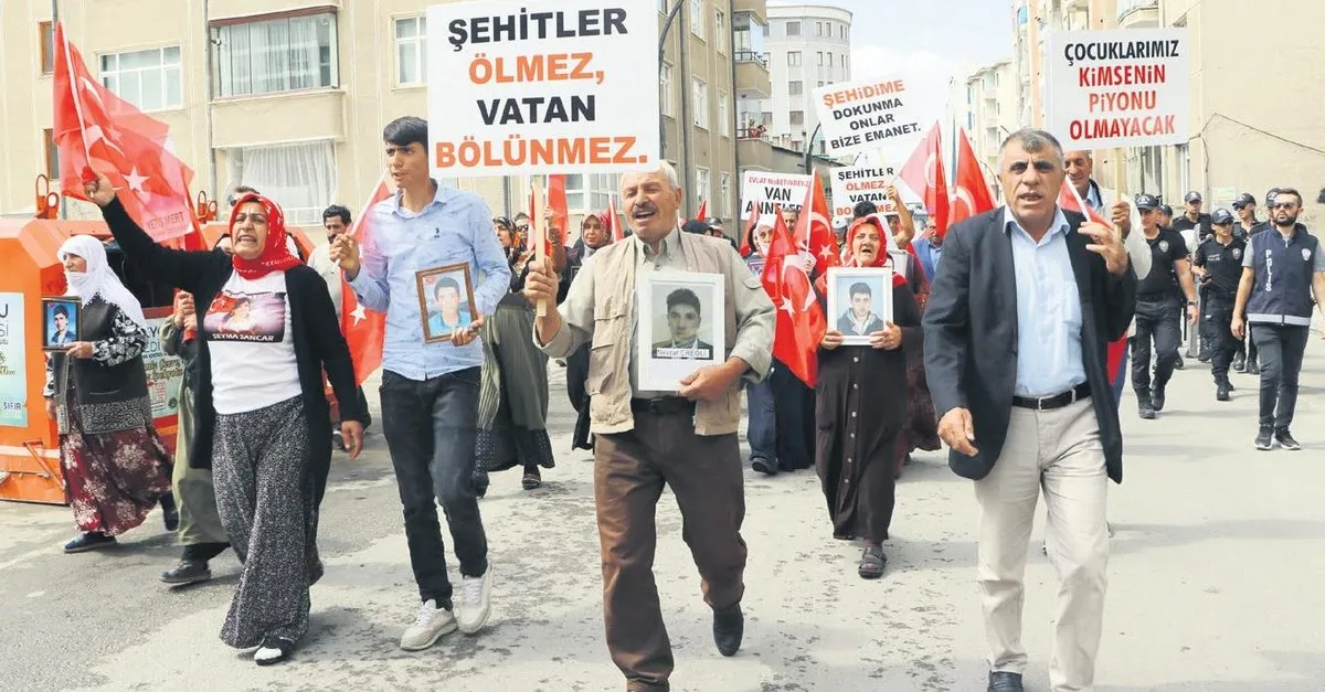 VAN'da çocuklarına kavuşma ümidiyle HDP il başkanlığı önünde eylem yapan aile sayısı 34 oldu. Çocuklarının dağa kaçırılmasından HDP'yi sorumlu tutan aileler, partinin il başkanlığı önünde yaptıkları eylemlerine bu hafta da devam etti. Ağabeyi 2014 yılında kandırılarak dağa götürülen Şahin Salim de ailelere destek vererek eyleme katıldı. Cumhuriyet Caddesi'nde bir araya gelen aileler, "Şehitler ölmez, vatan bölünmez", "Şehidime dokunma, onlar bize emanet", "Anneler HDP'yi lanetliyor", "Evlat nöbetindeyiz", "Artık yeter, yakamızdan düşün", "Çocuklarımız kimsenin piyonu olmayacak" ve "Van anneleri evlat nöbetinde" yazılı dövizler taşıdı. HDP ve terör örgütü PKK aleyhine slogan atarak HDP İl Başkanlığı önüne kadar yürüyen aileler, çocuklarına teslim olmaları çağrısında bulundu.
