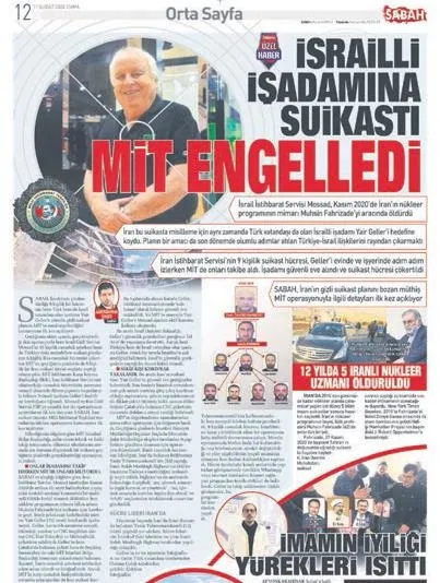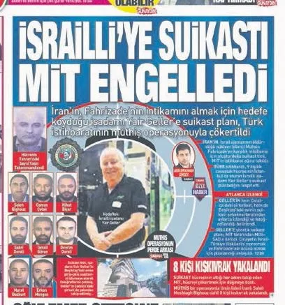 SABAH'ın uluslararası arenada ses getiren haberi "İran istihbaratının İsrail asıllı işadamı Yair Geller'e yönelik planladığı ve MİT'in radarına takılan suikast girişimi"yle ilgili önemli bir gelişme yaşandı. İran nükleer programının mimarı Muhsin Fahrizade cinayetine misilleme amacıyla Geller'i hedef alan İranlı 6 kişilik suikast hücresine yönelik soruşturma tamamlandı. İstanbul Cumhuriyet Başsavcılığı'nca 5 şüphelinin "devletin gizli kalması gereken bilgilerini siyasal veya askeri casusluk amacıyla temin etme", "suç işlemek amacıyla kurulan örgüte üye olma" suçlarından 17 yıldan 24 yıla kadar hapis cezasıyla cezalandırılması talep edildi. Şüphelilerden hücrenin sorumlusu Saleh Moshtagh'ın (44) ise hem "casusluk" hem de "suç işlemek amacıyla örgüt kurma" suçlarından 19 yıldan 28 yıla kadar hapsi istendi.