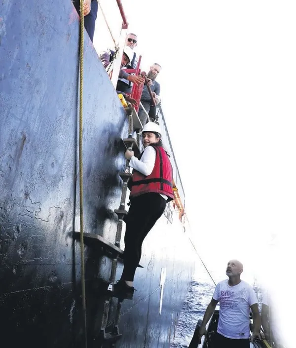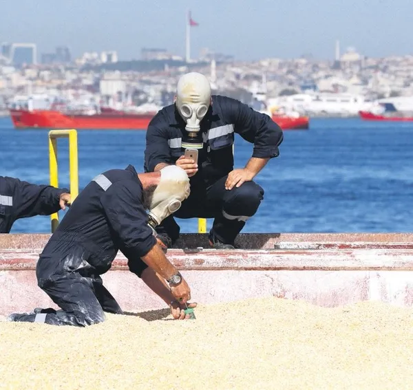 30 bin tondan fazla mısır taşıyan Akson Sara gemisi İstanbul Yenikapı açıklarında denetim için demirledi. Zeytinburnu Limanı'ndan denetim personeli ile acente botuna inerek Akson Sara gemisine ulaştık. İlk zorluğumuz 2 Rus, 2 Ukraynalı ve 2 Birleşmiş Milletler yetkilisinden oluşan ekiple birlikte gemiye çıkmak için kullandığımız ip merdiven oldu. Milli Savunma Bakanlığı, Ulaştırma ve Altyapı Bakanlığı ile Ticaret Bakanlığı'ndan personelin de katıldığı denetimler için artık gemideydik. 30 bin 238 ton mısır taşıyan 177 metrelik gemi, Ukrayna'nın Puvdenny Limanı'ndan yola çıkmış.
