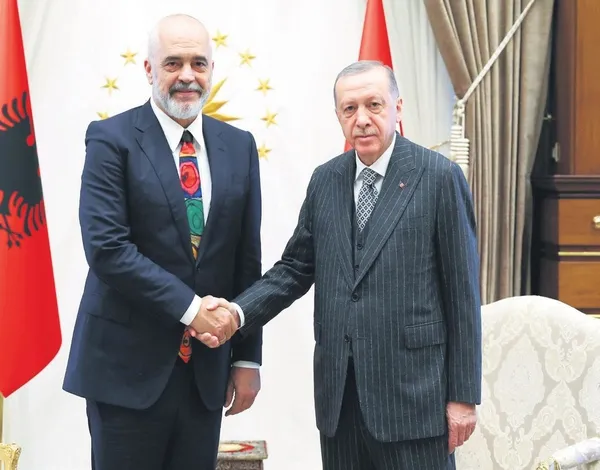 BAŞKAN Recep Tayyip Erdoğan, Arnavutluk Başbakanı Edi Rama'yı kabul etti. Külliye'de yapılan görüşme basına kapalı olarak gerçekleştirildi. Rama, 29 Eylül'de ülkesinin başkenti Tiran'da yaptığı açıklamada Türkiye'den satın almak için anlaştıkları Bayraktar SİHA'ların çok yakında hizmete gireceğini söylemişti. ANKARA