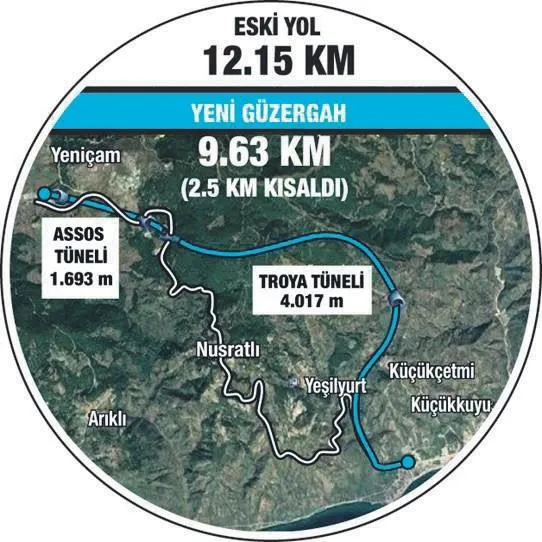 Çanakkale'yI İzmir ve Balıkesir'e bağlayan, yaklaşık 50 dakikada kat edilebilen 24 kilometrelik Kazdağları rampalarının 5 dakikada geçilmesini sağlayacak Troya ve Assos tünelleri hizmete girdi. Çanakkale - İzmir karayolunun Ayvacık - Küçükkuyu arası dağ, deniz ve termal turizminin bir arada yaşandığı bölge olması nedeniyle trafik akışının sağlıklı olması büyük önem arz ediyor. Tek şeritli ve TIR'ların yoğunlukla kullandığı keskin virajlara sahip olan bu yolda sollama yapılamadığı için trafik çilesi yaşanıyordu. Bir kamyon yavaş gidiyorsa arkasındaki tüm araçlar yavaş gitmek zorunda kalıyordu. Trafiğin çok yoğun olduğu bir bölge olan Kazdağı rampaları, Kalyon İnşaat tarafından yapılan bu yol ve tünellerle konforlu hale geldi. Can ve mal kaybına yola açabilecek kazaların önüne geçerek 2.52 kilometrelik kısaltmayla birlikte bölünmüş yol standartlarında trafik akışı sağlanmış oldu. Ulaştırma ve Altyapı Bakanı Adil Karaismailoğlu açılış töreninde yaptığı konuşmada '1915 Çanakkale Köprüsü'nü 7 ayda 1.5 milyon sürücü kullandı. Bu tüneller sayesinde de keskin virajlı Kazdağlarını sürücülerin korkulu rüyası olmaktan çıkardık" dedi.