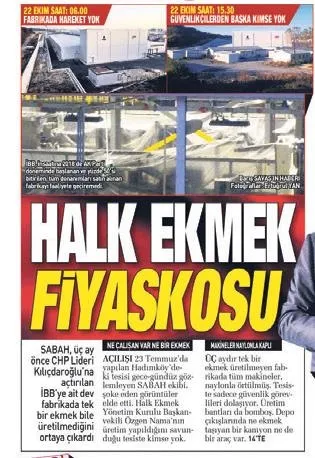 AK Parti İstanbul İl Başkanı Osman Nuri Kabaktepe, özel bir televizyon kanalında SABAH'ın gündeme taşıdığı Hadımköy'deki Ahmet İsvan Halk Ekmek Fabrikası'nın çalışmamasıyla ilgili tepkilerini dile getirdi. İBB Başkanı Ekrem İmamoğlu'nun Danışmanı ve Medya A.Ş. Yönetim Kurulu Başkanı Murat Ongun, cevap hakkını kullanmak üzere yayına bağlandı. Ongun, 23 Temmuz'da CHP Genel Başkanı Kemal Kılıçdaroğlu'nun katılımıyla açılışı yapılan Ahmet İsvan Halk Ekmek Fabrikası'nın 29 Ekim'e kadar makinelerin arızalı olması ve İstanbullunun ekmek ihtiyacının olmaması nedeniyle çalışmadığını söyledi.
