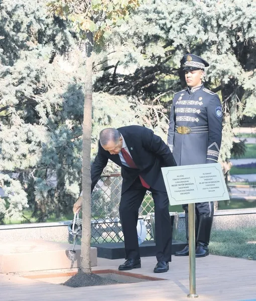 CUMHURBAŞKANI Erdoğan, 11 Kasım Milli Ağaçlandırma Günü kapsamında Semerkand'da TDT zirvesine katılan liderlerle birlikte Registan Meydanı'nda ağaç dikti.