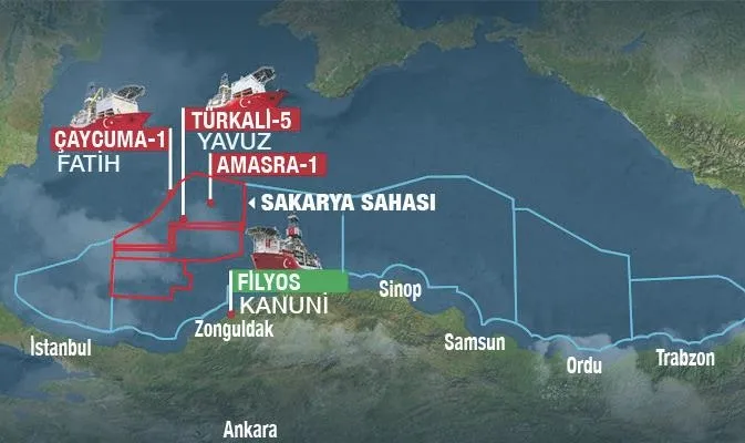 Sakarya Gaz Sahası'ndaki Tuna-1 lokasyonunda 320 milyar metreküple Türkiye tarihindeki en büyük doğalgaz keşfi yapıldı.