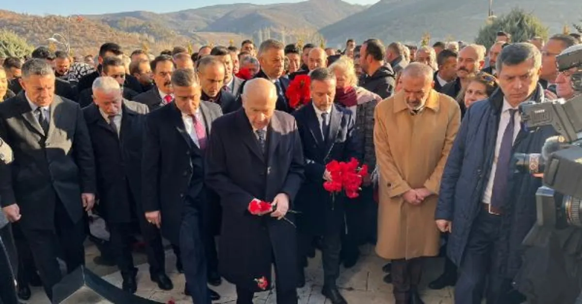 Bahçeli, daha sonra şehitlerin isimlerinin yazılı olduğu anıta karanfil bıraktı. 'Gökbörü Otağı'nı da ziyaret eden Bahçeli, burada bir süre partililerle sohbet etti.