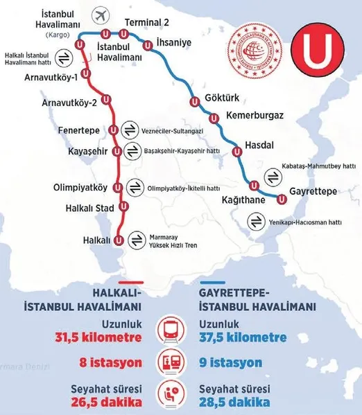 Türk teknik ve mühendisliğinin eşsiz bir eseri olan, ilklerin ve enlerin projesi hizmete açılıyor. Ulaştırma ve Altyapı Bakanlığı tarafından hayata geçirilen Beşiktaş (Gayrettepe) - Kâğıthane - Eyüpsultan (Göktürk) - İstanbul Havalimanı Metrosu'nun 34 kilometre uzunluğundaki Kâğıthane - Eyüpsultan - İstanbul Havalimanı kısmı, pazar günü Cumhurbaşkanı Recep Tayyip Erdoğan tarafından açılacak. Hattın açılmasıyla yurtiçi ve yurtdışı hava ulaşımında önemli bir terminal olan İstanbul Havalimanı'na doğrudan raylı sistem ile güvenli, hızlı ve ekonomik şekilde ulaşmak mümkün olacak.