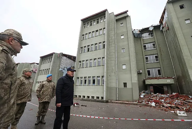 Serinyol'da depremin etkilediği, 3 askerin şehit olduğu 8'inci Komando Tugay Komutanlığında incelemelerde bulunan Akar, son duruma ilişkin bilgi aldı. Daha sonra kriz merkezine geçen Akar, kentteki arama kurtarma çalışmalarına ilişkin bilgi aldı.