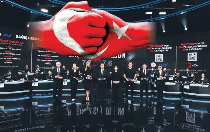 Ülkemizi yasa boğan son yüzyılın en büyük deprem felaketinin yaralarını sarmak için Türkiye tek yürek oldu. Başta Kahramanmaraş ve Hatay olmak üzere Adıyaman, Gaziantep, Adana, Osmaniye, Malatya, Diyarbakır, Şanlıurfa, Kilis'i etkileyen depremlerin yıkıcı sonuçlarını yaşayan vatandaşlarımız için Türkiye'nin tek yürek olduğu canlı yayın tüm kanallarda aynı anda ekranlara geldi.