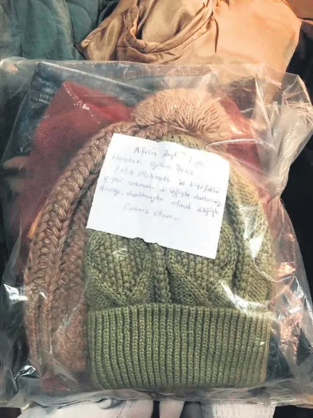 Anne Mehmethan, kıyafetlerin üzerine de "Afrin Zeytin Dalı Harekatı oğlum Şehit Fatih Mehmethan'ın kıyafetini giyeni ısıtması dileğiyle. Dualarımızdasınız, dualarınızda olmak dileğiyle" notunu yazdı.