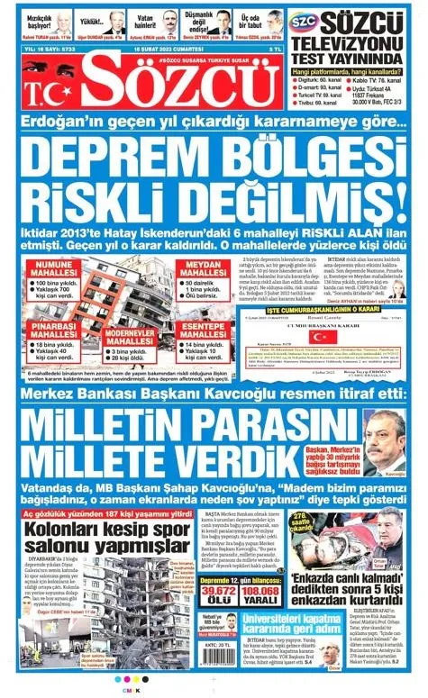 'Deprem bölgesi riskli değilmiş' başlığıyla yayımlanan çarpıtma haberle ilgili Çevre, Şehircilik Bakanlığı da açıklamada bulundu. Açıklamada şu ifadelere yer verildi: "Yüzde 65'inin ruhsatsız yapılardan oluşması nedeniyle Hatay'ın İskenderun ilçesindeki Meydan, Esentepe, Cumhuriyet, Numune, Pınarbaşı ve Modernevler mahalleleri Bakanlar Kurulu Kararıyla, 2013 yılında riskli alan ilan edilmiştir. Ancak depreme hazırlık amacıyla yapılan kentsel dönüşüm çalışmalarına bazı kesimler itiraz ederek Bakanlar Kurulu'nun bu kararını mahkemeye taşımıştır. Yapılan itiraz üzerine riskli alan kararı Danıştay tarafından iptal edilmiştir."