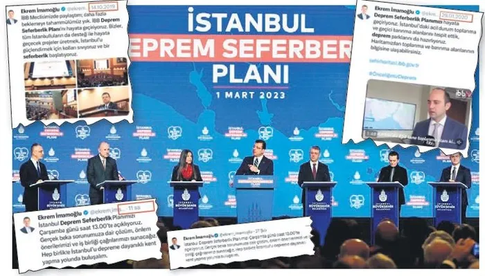 İstanbul Büyükşehir Belediye (İBB) Başkanı Ekrem İmamoğlu, her deprem sonrasında 'İstanbul Deprem Seferberlik Planı' açıklayacağını duyurdu ancak bir daha hiç anmadı. İBB Başkanı tarafından uzun süredir anılmayan 'Deprem Seferberlik Planı' son olarak Kahramanmaraş merkezli asrın felaketi sonrasında tekrar gündeme geldi. Beklenen İstanbul depremine karşı görevde bulunduğu 4 yıldır tek bir çivi dahi çakmayan İmamoğlu, dün İstanbul Kongre Merkezi'nde düzenlenen toplantıda "İstanbul Deprem Seferberlik Planı" başlattıklarını duyurdu.