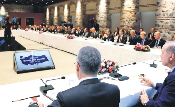 Türkiye'nin afetlere daha hazırlıklı ve dirençli hale getirilmesi için oluşturulan Türkiye Ulusal Risk Kalkanı Modeli'nin ilk toplantısı dün İstanbul Dolmabahçe'de gerçekleştirildi. Programda Cumhurbaşkanlığı İletişim Başkanlığı'nın hazırladığı 8 dakikalık bir sunum yapıldı. Ardından uzmanlar 5'er dakikalık sunumlar gerçekleştirdi. Başkan Erdoğan, toplantının açılışında ve kapanışında özetle şunları kaydetti: