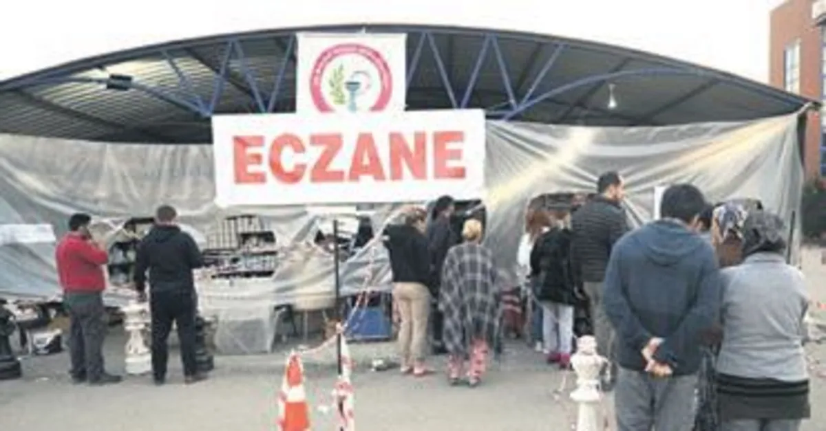 Sağlık Bakanlığı tarafından kurulan Hatay Eğitim ve Araştırma Hastanesi'nin yanında yer alan sahra eczanesinde sayıları her geçen gün değişmekle birlikte şu an 41 personel bulunuyor. Eczanede öksürük şuruplarından ağrı kesicilere, antibiyotiklerden kronik hastaların kullandığı ilaçlara kadar pek çok tıbbi malzeme yer alıyor. Böylelikle tedavisi devam eden hastaların ihtiyaçları hızlıca karşılanıyor.