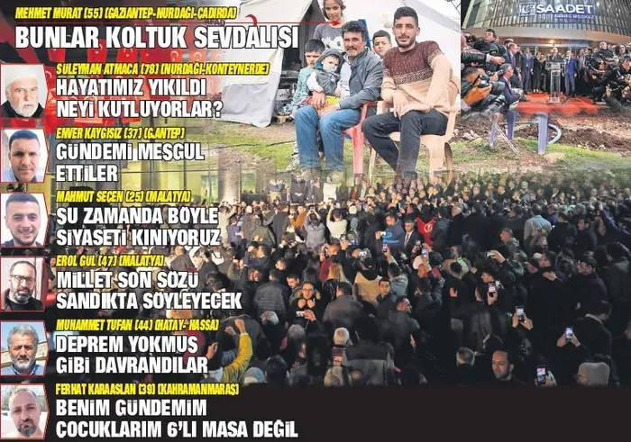 6'lı Masa'da geçtiğimiz hafta başlayan ve günümüze kadar uzanan siyasi entrikalar dizisi, depremden zarar gören vatandaşlarımıza yönelik yürütülen yardım kampanyalarını gölgede bıraktı. SABAH'a konuşan depremzedeler muhalefete sert tepki gösterdi:
