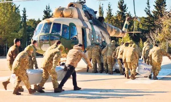 10 HELİKOPTER HAVALANDI: 6 Şubat'ın ilk saatlerinde Ankara'dan 10 helikopter topluca kalkış yapıyor. Hava şartları nedeniyle üç buçuk saat havada kalıyor -normalde helikopterler iki buçuk saat havada kalıyor- ancak Toroslar'ı geçemeyince Aksaray'da uygun yere iniyorlar.
