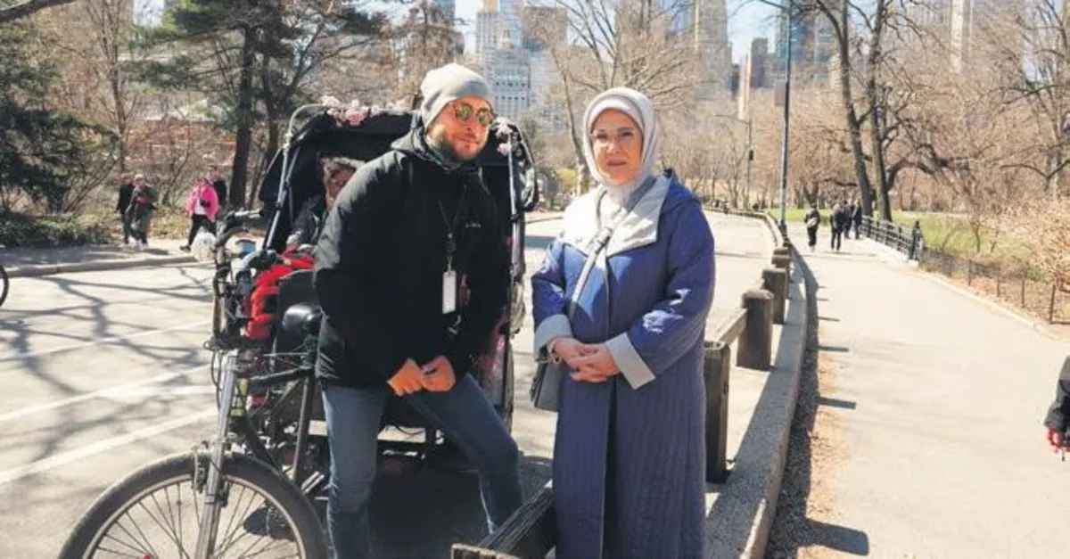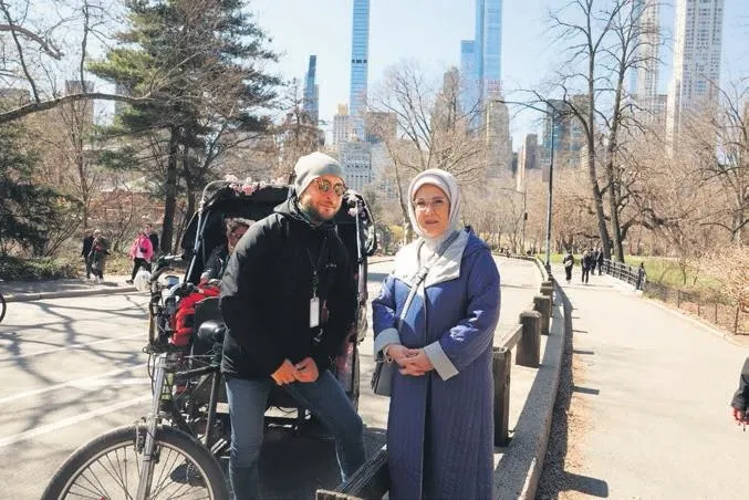 Emine Erdoğan'ı Central Park'ta görenler, kendisiyle fotoğraf çektirdi.