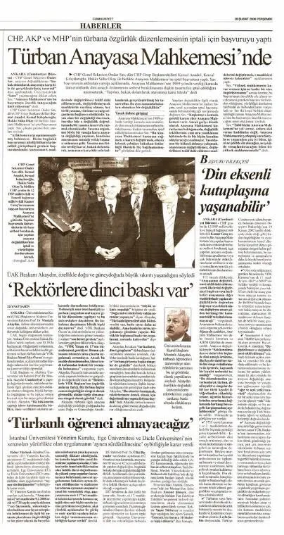 • Dönemin YÖK Başkanı, Aralık 2007'de rektörlere "başörtüsü yasağını kaldırmaları" talimatı vermişti.