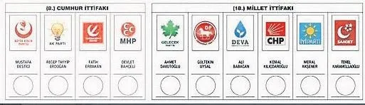 Siyasi partilerin birleşik oy pusulasındaki yerleri, YSK’daki kura çekimiyle belirlendi. Cumhur İttifakı oy pusulasının 8. sırasında, AK Parti ittifak içinde 2. sırada yer alacak. Millet İttifakı ise 18. sırada