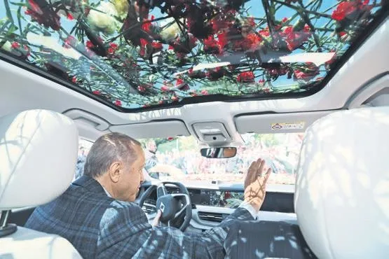 Başkan Erdoğan, Bursa'nın Gemlik ilçesine Togg'la giriş yaptı. Erdoğan'a vatandaşlar sevgi gösterisinde bulununca konvoy güçlükle ilerleyebildi. Vatandaşlar Gemlik'te üretilen Togg'un üzerine binlerce karanfil atarak Erdoğan'a sevgisini gösterdi.