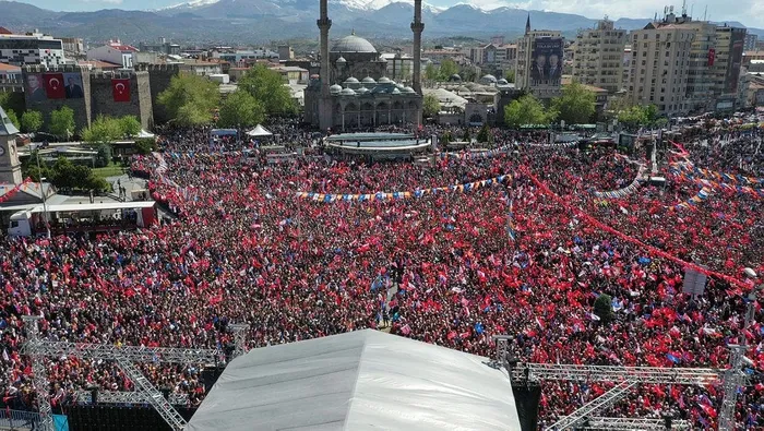 Havalimanından buraya gelene kadar hariç; resmi rakamla şu anda bu meydan rekor kırdı, 135 bin kişi burada. Bay Bay Kemal, Kayseri ne diyor? 14 Mayıs'ta da bunlara bu cevabı verecek miyiz? Buna hazır mıyız? Allah sizlerden razı olsun.