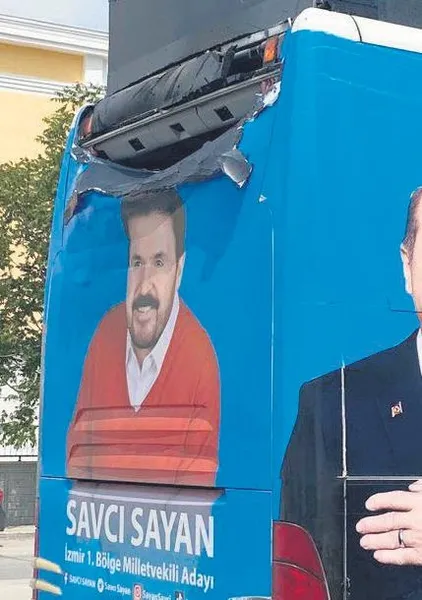 İzmir'de, önceki akşam AK Parti İzmir milletvekili adayı Savcı Sayan ve ekibini taşıyan seçim otobüsü, saldırıya uğradı. PKK sloganı atan bir grubun otobüsün camlarını kırdığı saldırıda Sayan'ın ekibinden 3 kişi yaralandı. SABAH'a konuşan Sayan, "Zafer işareti yapıp, Cumhurbaşkanımıza hakaret ederek saldırdılar. PKK sloganları attılar.