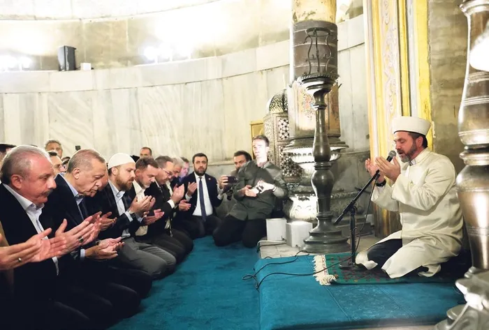 AKŞAM VE YATSI NAMAZINI AYASOFYA'DA KILDI