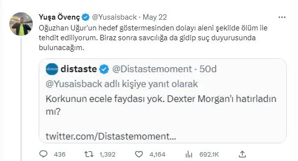 Kemal Kılıçdaroğlu'nun katıldığı Youtube programındaki tiyatroyu ifşa eden Yuşa Övenç isimli genç Oğuzhan Uğur tarafından hedef haline getirildi. Uğur'un açıklamalarının ardından sosyal medyada harekete geçen CHP'li, HDP'li ve FETÖ'cü troller Övenç ve ailesini tehditlere başladı. Annesinin telefon numarasına varana kadar paylaşıldığını ifade eden Övenç, aldığı ölüm tehditlerini ve hakaretleri de sosyal medya hesabından paylaştı.