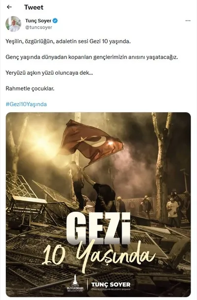 Kanalizasyon kokularının sardığı ve müsilaj sorunlarıyla da boğuşan kentin Belediye Başkanı Tunç Soyer'in sosyal medya hesabından 'Gezi Terörü'nü över nitelikli paylaşımı ise tepki çekti. Soyer, "Yeşilin, özgürlüğün, adaletin sesi Gezi 10 yaşında." ifadelerini kullandı.