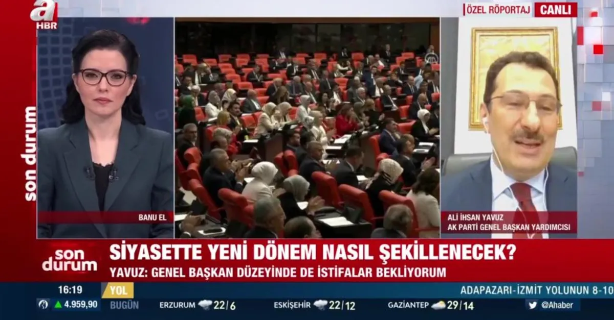 AK Parti Genel Başkan Yardımcısı Ali İhsan Yavuz, A Haber canlı yayınında gündeme ilişkin önemli açıklamalarda bulundu. "Genel Başkanlar düzeyinde istifalar olur mu?" sorusuna yanıt veren Yavuz, Selahattin Demirtaş'ın aktif siyaseti bırakma kararı aldığını, CHP'de de bazı isimlerin Kemal Kılıçdaroğlu'na istifa çağrısında bulunduğunu hatırlatarak, "Ben genel başkan düzeyinde ya istifaların ya da bundan sonraki kongrelerde adaylıktan çekilmelerinin söz konusu olabileceğini öngörüyorum." ifadelerini kullandı. Yavuz ayrıca, Başkan Erdoğan'ın cumartesi günü mazbatasını aldıktan sonra saat 22.00 gibi yeni Kabine'yi açıklayabileceğini ifade etti.