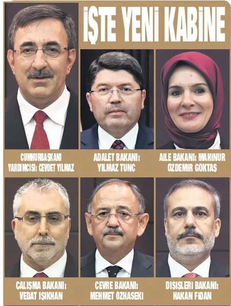 Başkan Erdoğan, Türkiye Yüzyılı Kabinesi'ni açıklarken şunları söyledi: "Türkiye 14 Mayıs ve 28 Mayıs'ta sadece birer seçim yapmamış, gelecek asrının nasıl olacağına da karar vermiştir. Milletimiz iradesiyle birlikte istiklal ve istikbaline sahip çıkmıştır. Türkiye bugün dünden daha güçlüdür, demokrasimiz her zamankinden daha kuvvetlidir. Yarınlarımız 28 Mayıs öncesine göre daha aydınlıktır. Şimdiye kadar beraber çalıştığımız, nice sorunu birlikte çözdüğümüz, nice badireyi beraber aştığımız eski kabine üyelerimize bir kez daha teşekkür ediyorum."