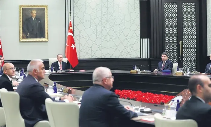 Cumhurbaşkanlığı Kabinesi, Cumhurbaşkanı Recep Tayyip Erdoğan başkanlığında toplandı. Beştepe'de saat 14.30'da başlayan ve yaklaşık 8.5 saat süren toplantıda her bakan ayrı ayrı sunum yaptı. Asgari ücret, memur-emekli maaşları, enflasyon ve fahiş fiyatlarla mücadelenin ele alındığı toplantıda alınan kararları Cumhurbaşkanı Erdoğan açıkladı. İşte Erdoğan'ın açıklamalarından önemli satır başları: