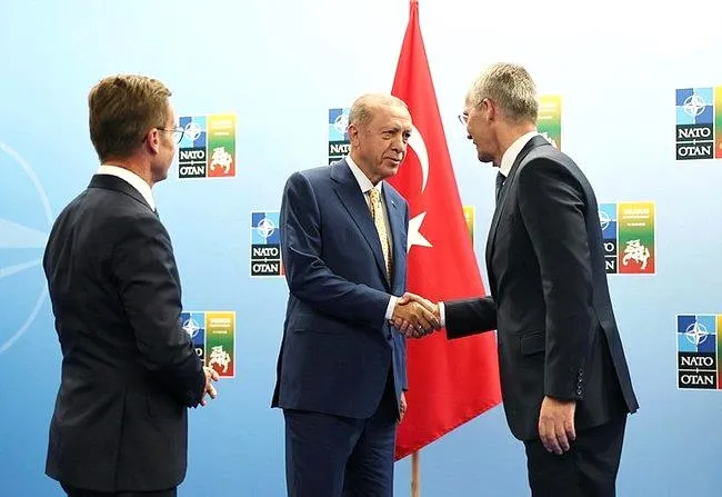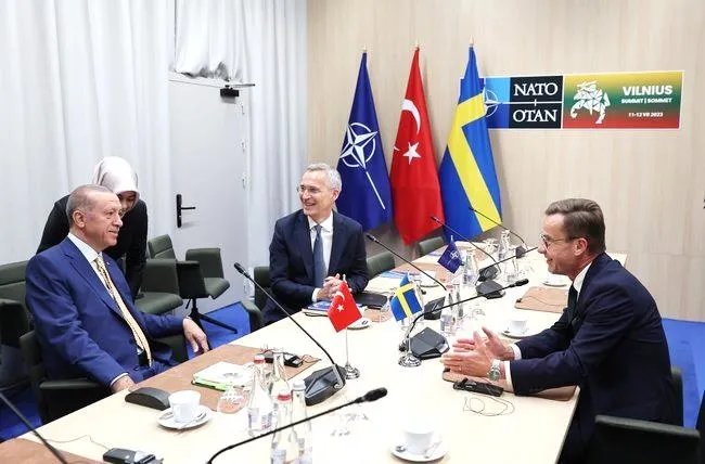 Cumhurbaşkanı Recep Tayyip Erdoğan, NATO Devlet ve Hükümet Başkanları Zirvesi için gittiği Litvanya'nın başkenti Vilnius'da dün NATO Genel Sekreteri Jens Stoltenberg ve İsveç Başbakanını Ulf Kristersson ile üçlü zirvede bir araya geldi. İsveç'nin NATO üyelik sürecinin ele alındığı ve dünyanın yakından izlediği kritik toplantının ilk bölümü yaklaşık 1.5 saat sürdü. Verilen aranın ardından gerçekleştirilen ikinci oturumda ise görüşmeler mutabakata varılmasıyla sonuçlandı. Konuya ilişkin açıklamayı ise NATO Genel Sekreteri Jens Stoltenberg yaptı. Türkiye'nin dile getirdiği endişeler ile İsveç'in endişeleri konusunda bir uzlaşı oluştuğunu ifade eden Stoltenberg, ortak bir zemin bulduklarını, bunun üzerinde ilerlediklerini dile getirdi. Üçlü görüşmeye ilişkin yapılan 7 maddelik yazılı açıklamada öne çıkan başlıklarda ise toplantıya ilişkin şu ifadelere yer verildi: