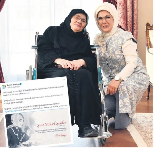 Cumhurbaşkanı Recep Tayyip Erdoğan'ın eşi Emine Erdoğan, "Birleşen Yollar" ve "Huzur Sokağı" romanlarıyla hatırlanan gazeteci-yazar Şule Yüksel Şenler'i, vefatının 4. yılında andı. Emine Erdoğan, sosyal medya hesabından yaptığı paylaşımda, "Büyük dava insanı Şule Yüksel Şenler'in mücadelesi, fikirleri ve eserleri bugün her yürekte yankılanıyor.