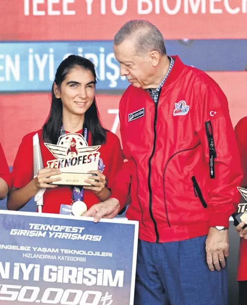 Erdoğan, TEKNOFEST Girişim Yarışması ödüllerini verdi. Görme engelli Zülal Tannur da (21) geliştirdiği yapay zekâ teknolojisiyle 'Engelsiz Yaşam' kategorisinde birinci oldu.
