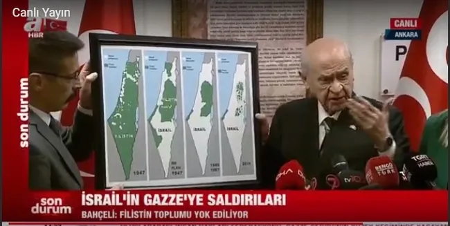 İsrail'in Gazze'ye saldırıları ile ilgili açıklama yapan MHP lideri Devlet Bahçeli "Gazze'ye olan saldırılardan üzüntü duyuyoruz. Haçlı Seferi'nin yeni bir ruhu. Gazze'de insanlık dışı muamele var. Erdoğan bir an evvel ateşkes için çalışıyor. " dedi. Bahçeli ayrıca; "İsrail’in aklını başına alması ve Amerikalı dayılarına güvenmemesi lazım. Türkiye’nin etrafında kenetlenerek bu sıkıntıları gidermesi lazım. Sorun ABD ve İsrail arasındadır. Sorunu çözecekse onlar çözeceklerdir" ifadelerine yer verdi.