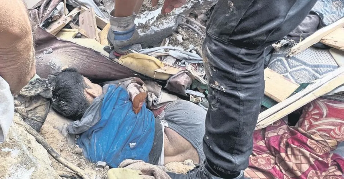İsrail ordusu, abluka altındaki Gazze Şeridi'ne yönelik saldırılarına 10. gününde de devam etti. Han Yunus kentine düzenlenen saldırılarda yerle bir olan Mısri ailesine ait eve gelen sivil savunma ekipleri ve bölge sakinleri arama kurtarma çalışması başlattı. Enkaz altında cansız bedeni bulunan bir çocuğun İsrail bombalarına uykuda yakalandığı tespit edildi. Bu görüntü yürekleri dağladı.