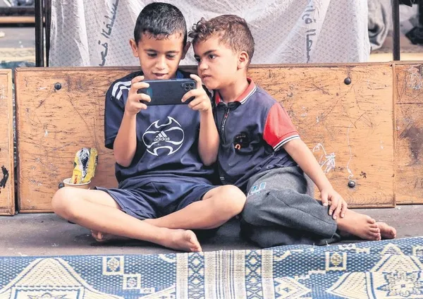 İsrail aralarında binlerce Filistinlinin sığındığı BM mülteci okullarının da olduğu birçok binayı acımasızca vuruyor. Gazze'nin Han Yunus Mahallesi'ndeki o okullardan birinde önceki gün çekilen fotoğrafta iki Gazzeli çocuğun cep telefonunda neşeyle oyun oynamaları yürekleri ısıttı.