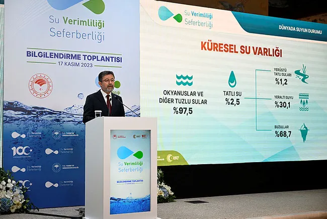 Tarım ve Orman Bakanlığı tarafından; kuraklık, ülkedeki mevcut su durumu ve iklim değişikliğinin coğrafyaya etkileri karşısında uygulanacak önlem ve planlar ile ilgili adımların kamuoyu ile paylaşıldığı 'Su Verimliliği Seferberliği' bilgilendirme toplantısı Beşiktaş'ta bulunan Cumhurbaşkanlığı Çalışma Ofisi'nde gerçekleştirildi. Toplantıya, Tarım ve Orman Bakanı İbrahim Yumaklı katıldı. Bakanlığın hazırladığı tanıtım filmiyle başlayan toplantı, Bakan Yumaklı'nın konuşmasıyla devam etti.